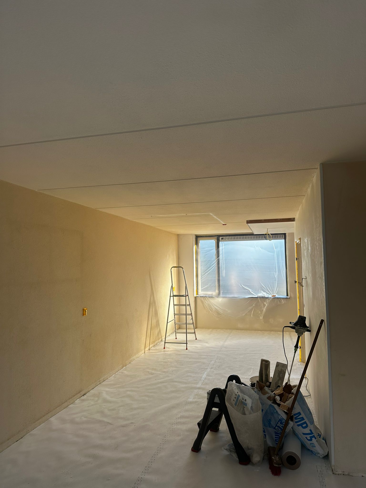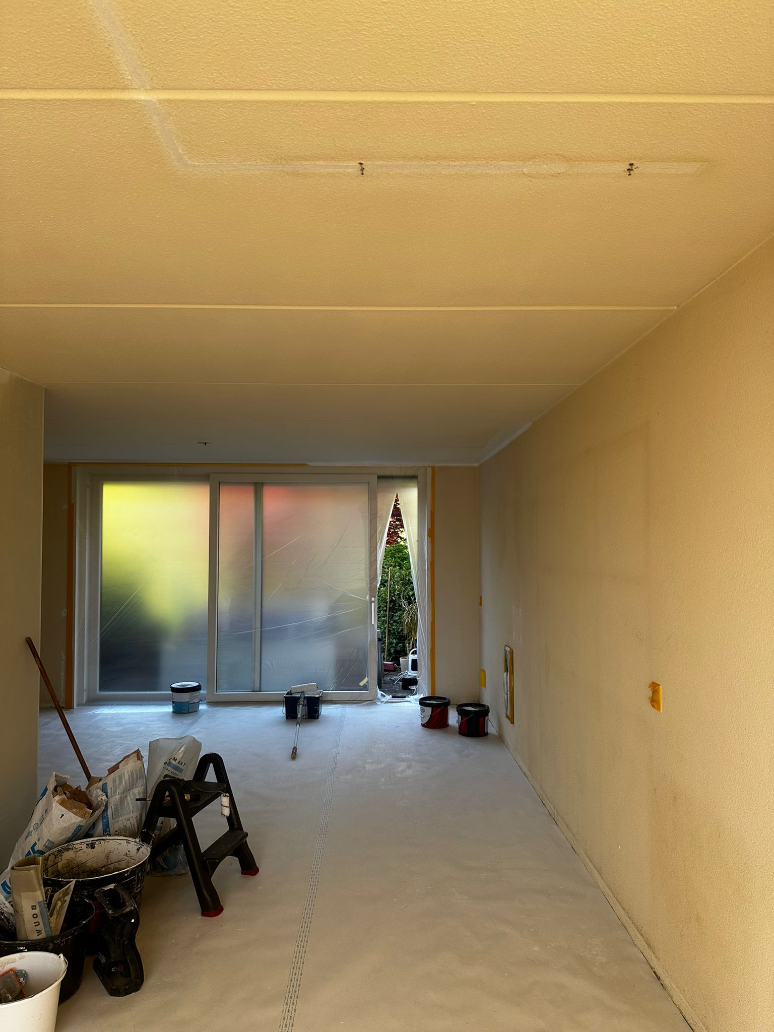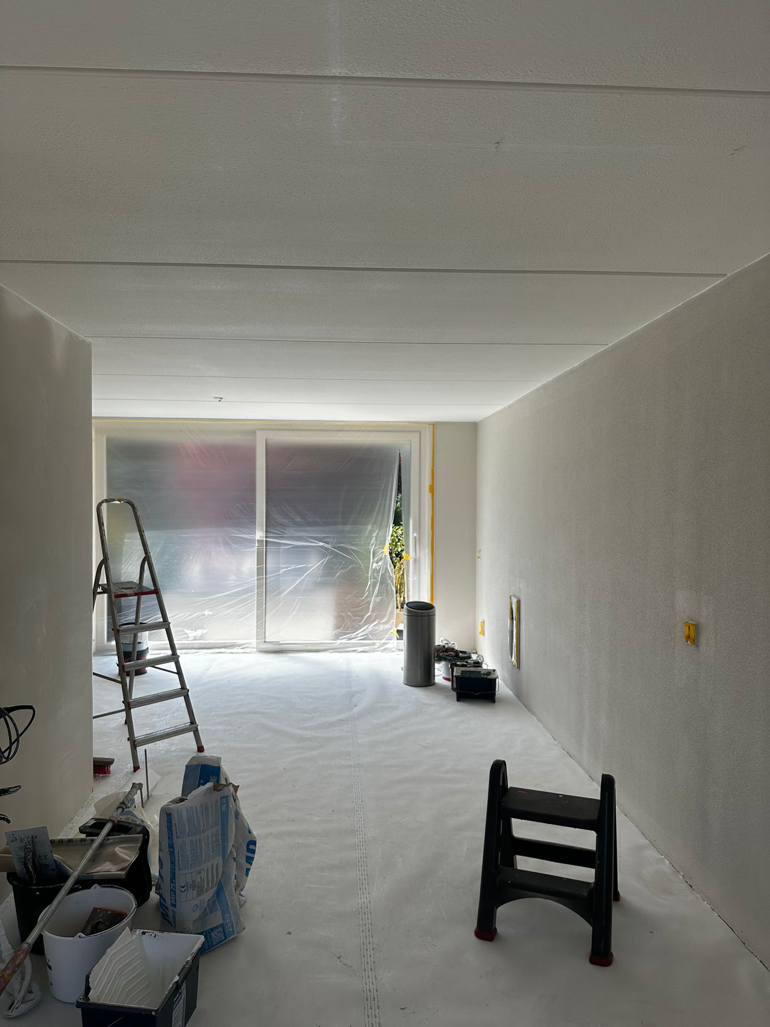 Huiskamer stucen en schilderen